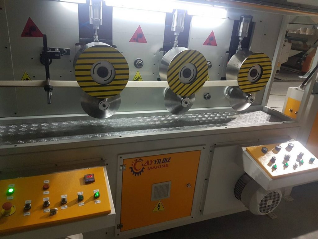 Станок для изготовления защитного картонного уголка производится с использованием новейших технологий, скорость производства продукции может достигать 100 метров в минуту. Размер отрезного блока контролируется серводвигателем и электронной системой, поэтому станок работает гораздо более эффективно.